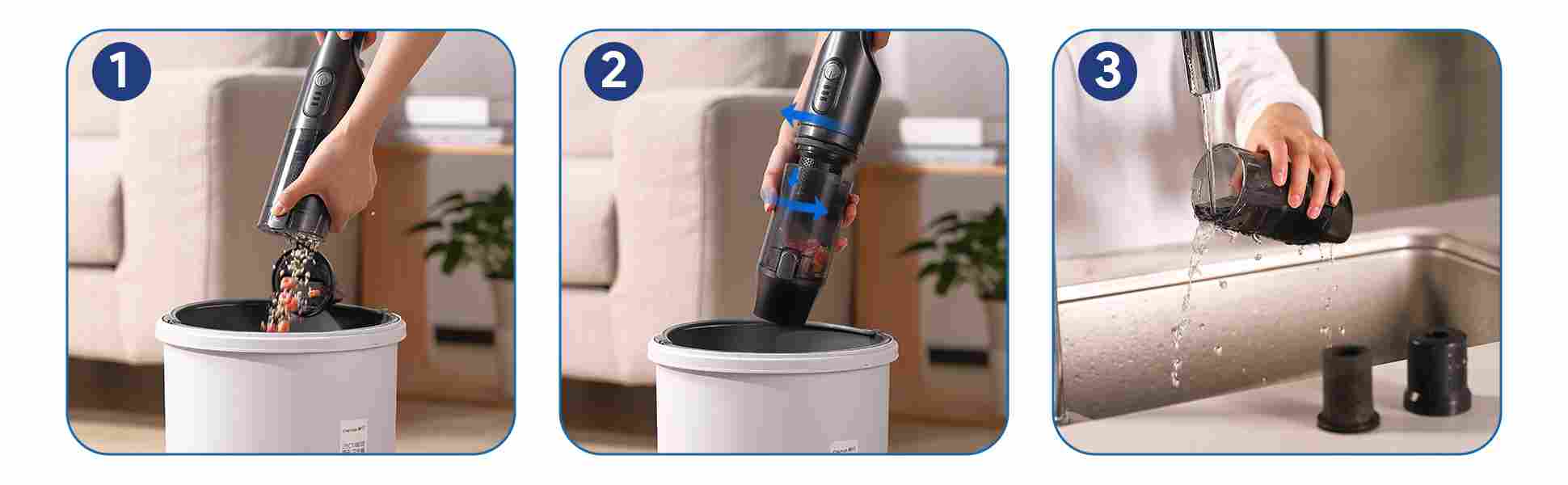 【ONE-RELEASE & WASHABLE FILTER】One-release button design makes emptying dust cup become easier.Both the dust cup and the filter of the handheld vacuum are removable for easy deep cleaning.