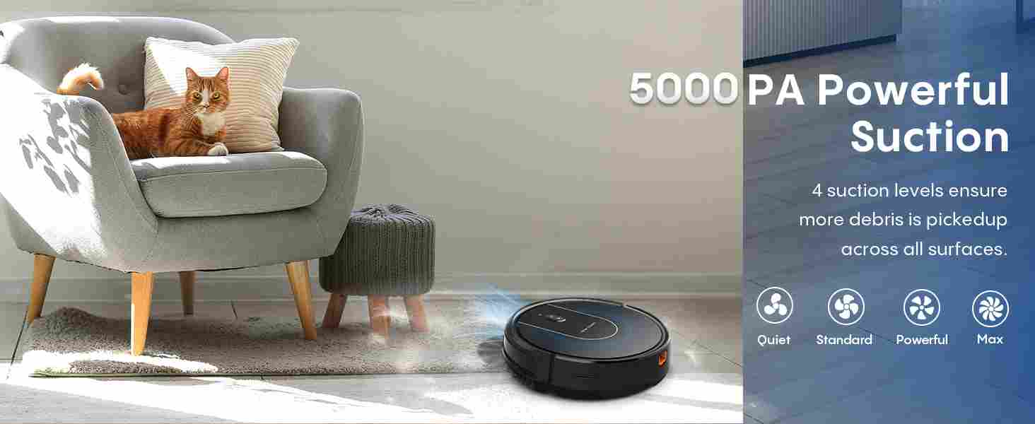 【5000PA Strong Suction for In-Depth Cleaning】➤Eitton 800Pro robot vacuum cleaner equipped with strong digital motor. Maximum suction reaches 5000pa can effortlessly pick up dusts, pet hairs and dirt. Delivers in-depth cleaning experience for every room. 3 suction modes and special carpets auto-boost to meet your different needs.