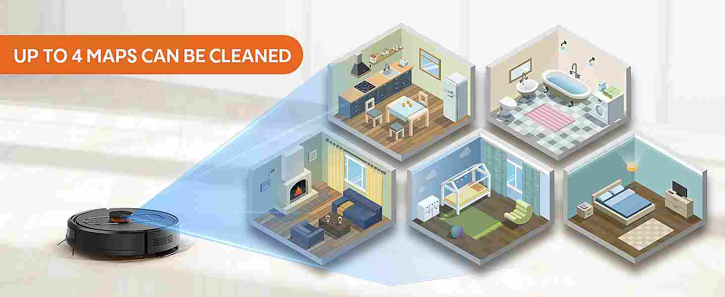 【360° LiDAR Precision Mapping and Navigation】The BL20 Pro robot vacuum cleaner uses the most advanced LiDAR mapping technology, which can scan and identify various complex home layouts at 360°, quickly and accurately map and plan cleaning routes more effectively. Compared with traditional vacuum cleaners, it can improve cleaning efficiency by 70%.