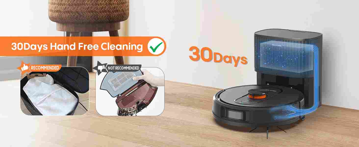 【45-Days of Hands-Free Cleaning】BL20 Pro Robot Vacuum and Mop has a large-capacity dust collection station, which can quickly dump dirt and dust into the dust bag while preventing clogging. Fully automated daily cleaning, making life simpler and more convenient.