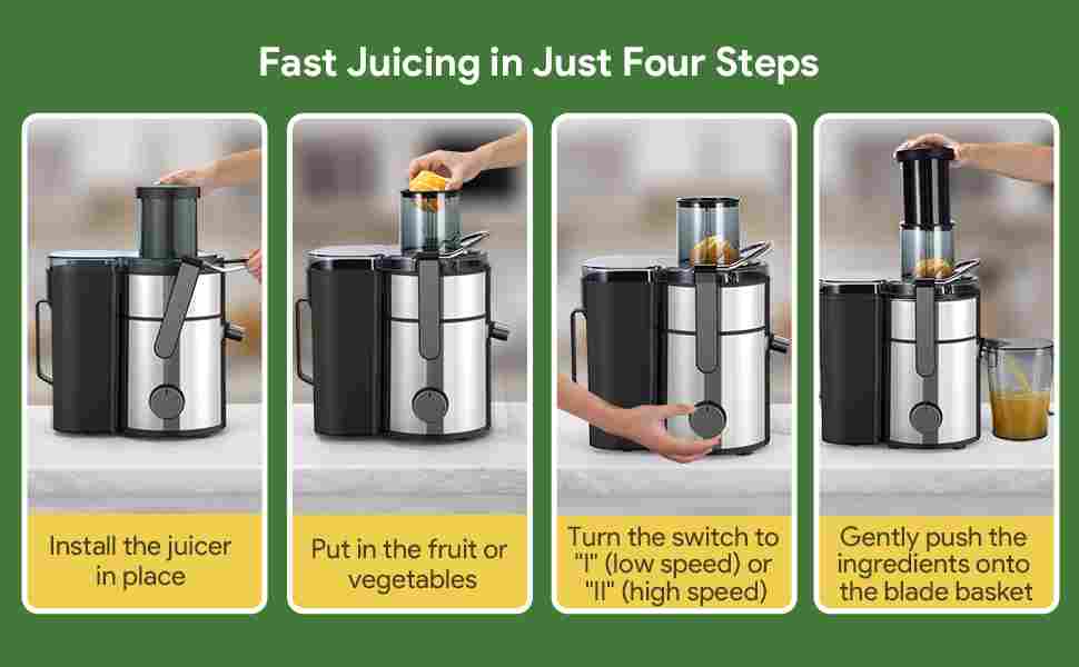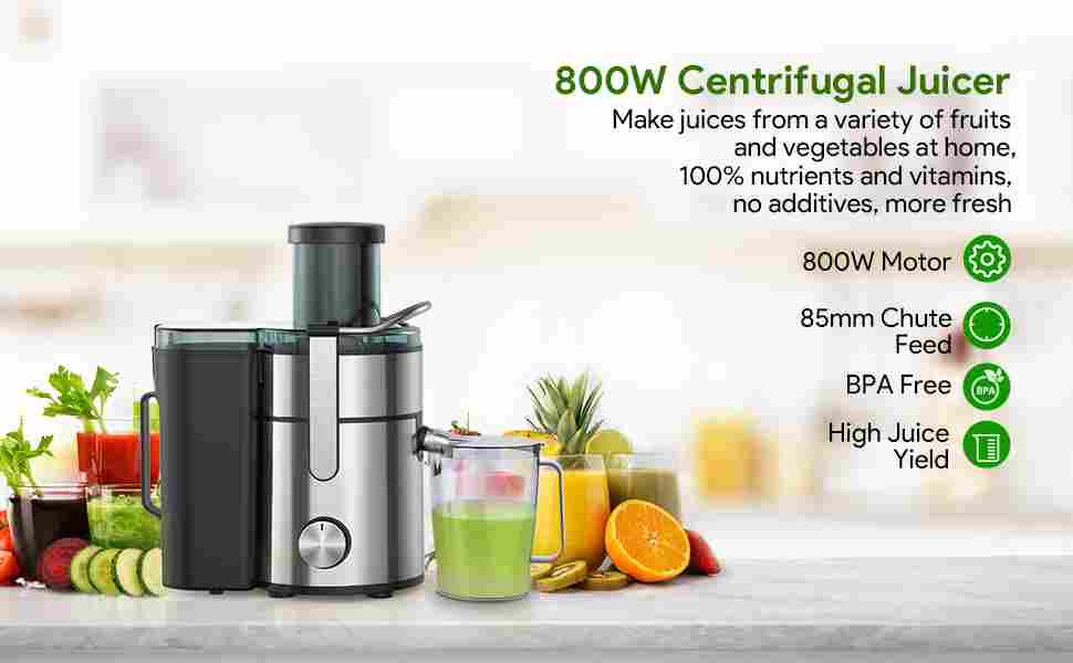 【Powerful Motor Dual Speed】800W powerful motor with dual speed modes. Mode "Ⅰ" is for soft and juicy fruits and vegetables. Mode "Ⅱ" is more suitable for hard food and root vegetables. Two speeds can bring the highest juice extraction efficiency, could provide you with a glass of fresh and high quality juice in just two minutes.It's very useful juicers whole fruit and vegetable.