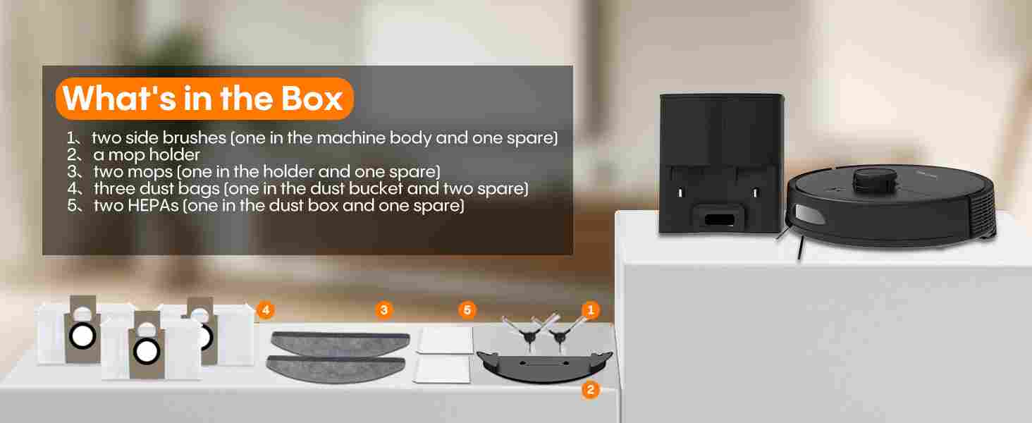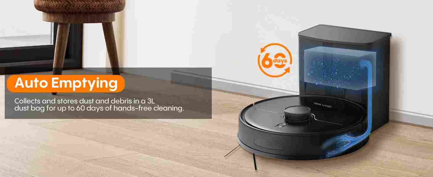 【Up to 60 days of hands-free cleaning】The eitton A6Pro is equipped with a 2.5-liter automatic emptying station, which can effectively suck out dust and debris and transfer them to the automatic emptying station, ensuring that you can enjoy up to 60 days of cleaning time before replacement, Sealed design is easy to dispose without getting your hands dirty.