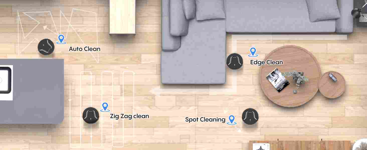 【4 High-Efficiency Cleaning Modes】A22 has multiple cleaning modes, including automatic mode, edge cleaning mode, fixed-point cleaning mode, manual cleaning mode and scheduled cleaning mode, allowing you to customize a more professional cleaning process according to your needs. If you want to find the A22 robot vacuum cleaner at work, you can click "Find Machine" in the app and it will make a beeping sound.