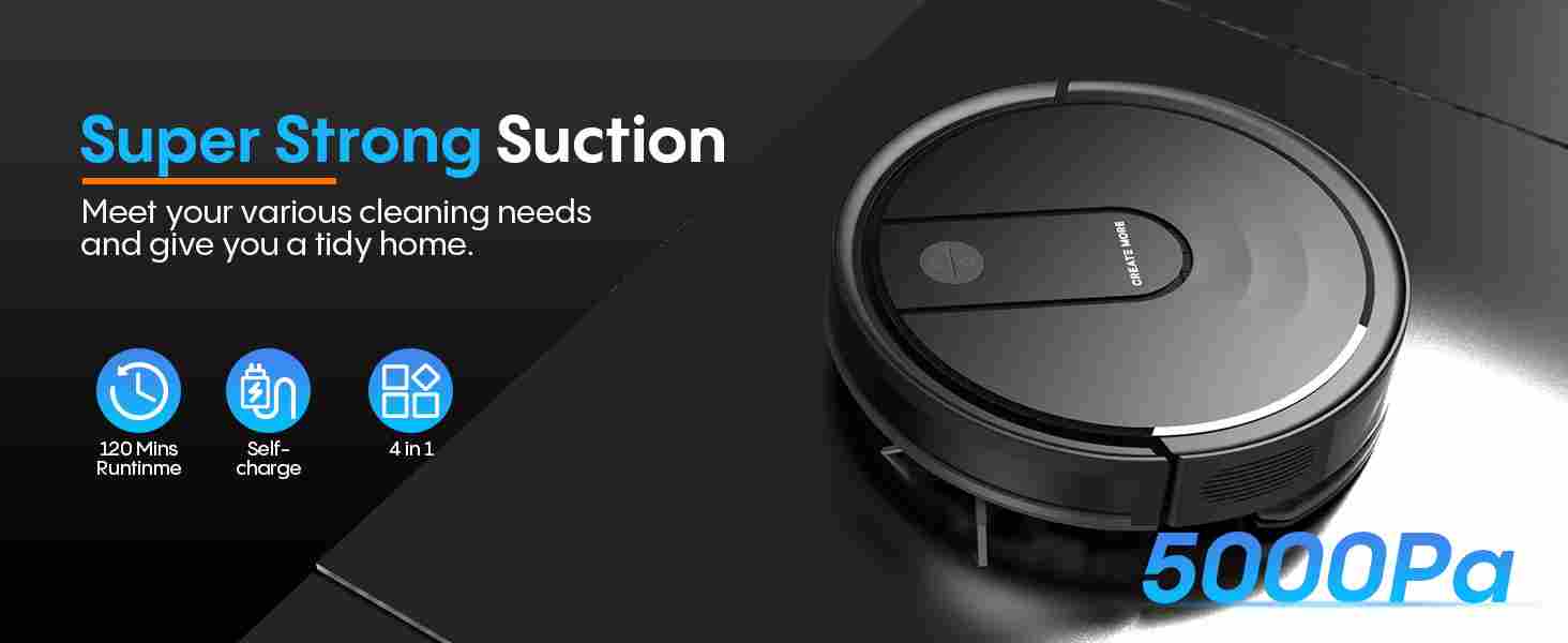 【5000Pa Super Suction】This Robot Vacuum and Mop can provide a maximum suction of 5000Pa, which can easily suck away debris, hair and dust in the gaps on the floor and carpet.