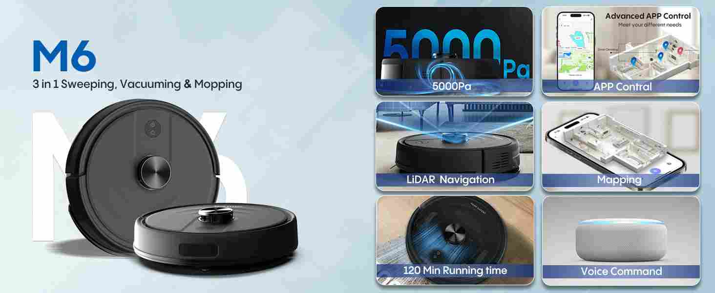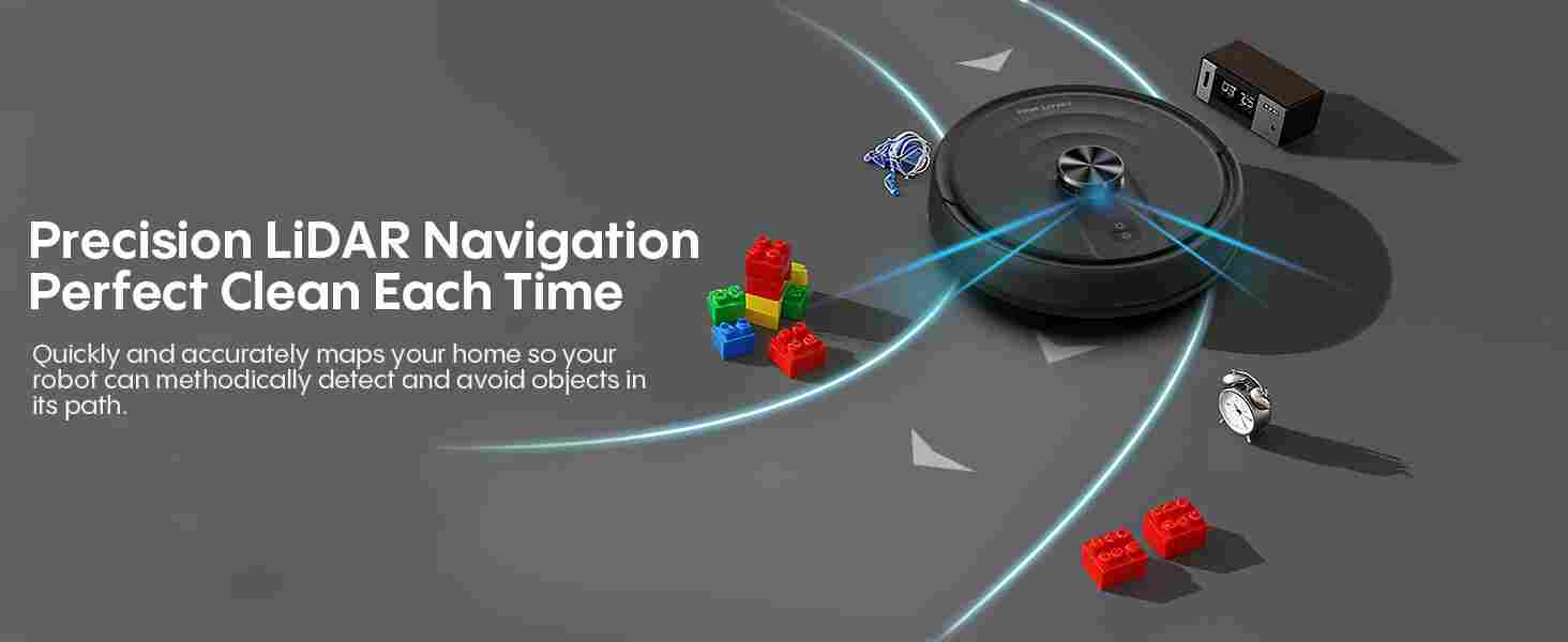 Robot Vacuum and Mop with LiDAR Navigation, 5000Pa Robotic Vacuums with Mapping, No-Go Zones, Self-Recharging, Wi-Fi/App/Alexa Control, Ideal for Pet, Hard Floors, Carpet