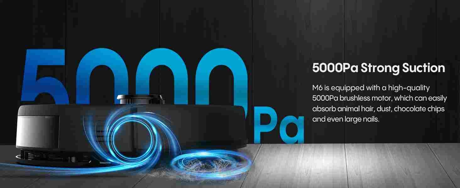 【5000Pa Super Suction】The vacuum and self-draining robot offers a maximum suction of 5000Pa, easily sucking up debris, hair, and dust on floors and carpets.
