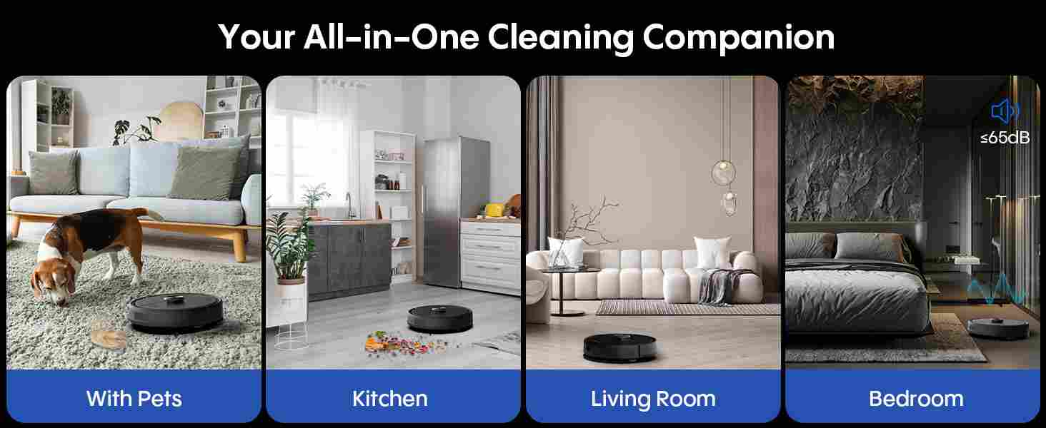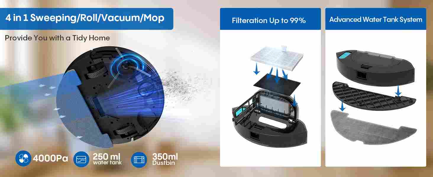 【4-in-1 Sweeping, Vacuuming, Mopping and Self-Empty】: This robot vacuum cleaner combines sweeping, vacuuming, mopping and vacuuming for a complete cleaning solution. Free your hands and enjoy comfort.