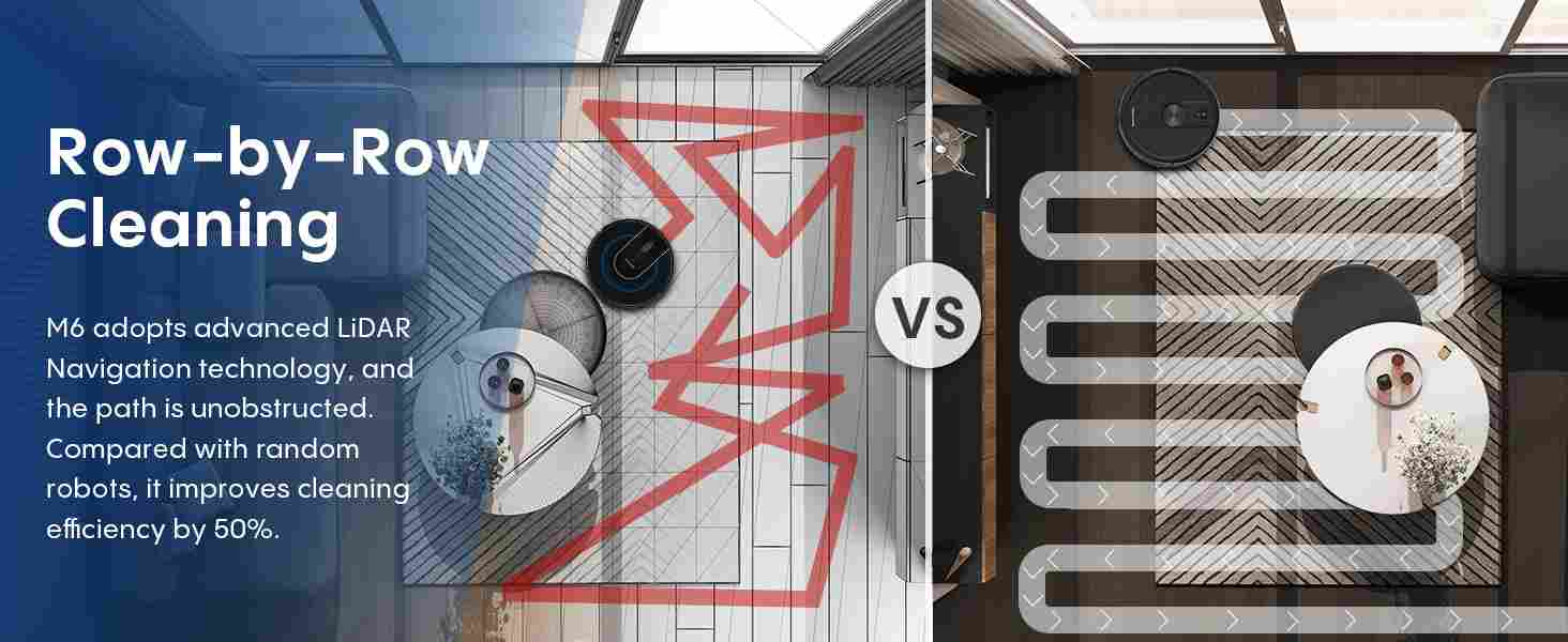 【360° LiDAR Precise Mapping and Navigation】The BL20pro sweeping robot adopts the most advanced LiDAR mapping technology, scanning and identifying various complex home layouts in 360°, allowing for quick and accurate mapping and planning of cleaning routes. Compared with traditional vacuum cleaners, its cleaning efficiency is increased by 70%.